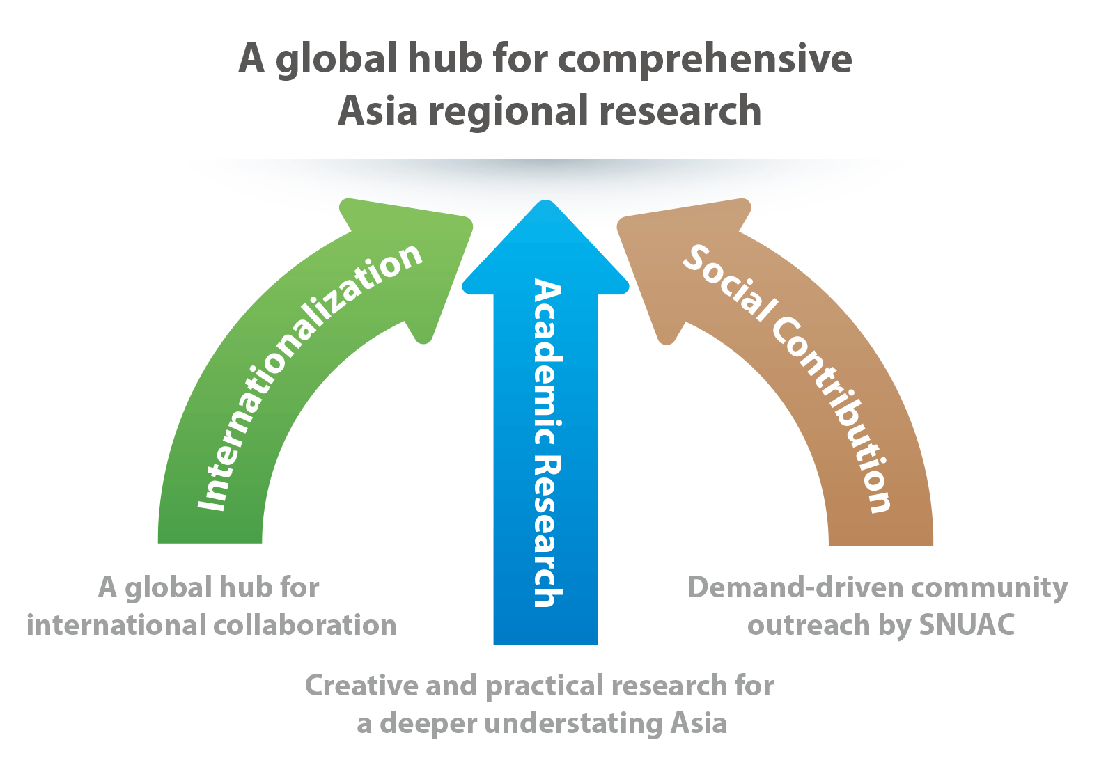 SNUAC combines region-specific Asian studies with thematic research. It actively conducts research and disseminates findings through seven regional centers, eight thematic programs, and the HK+ Mega-Asia Research Project, supported by the National Research Foundation of Korea. In addition, SNUAC undertakes initiatives to foster the next generation of regional experts and to share Asia-related knowledge with the public.